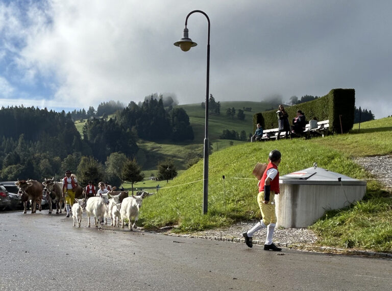 Die Schule besucht die Viehschau in Trogen und wertschätzt das regionale Brauchtum.